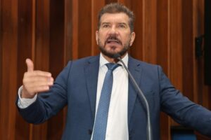 Durante a sessão plenária de quinta-feira (5), na Assembleia Legislativa de Mato Grosso do Sul (ALEMS), os deputados Pedro Kemp (PT)