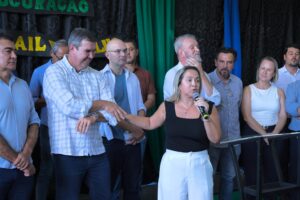 Durante agenda oficial em Dourados, a deputada estadual Lia Nogueira (PSDB) acompanhou o governador Eduardo Corrêa Riedel (PP) na entrega